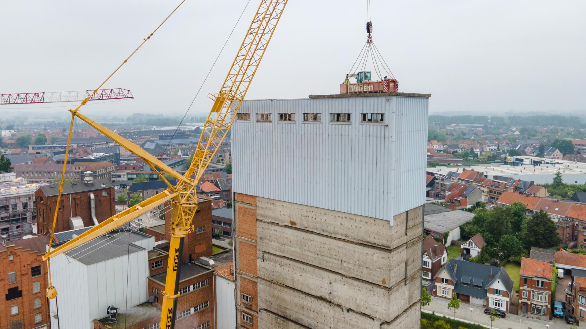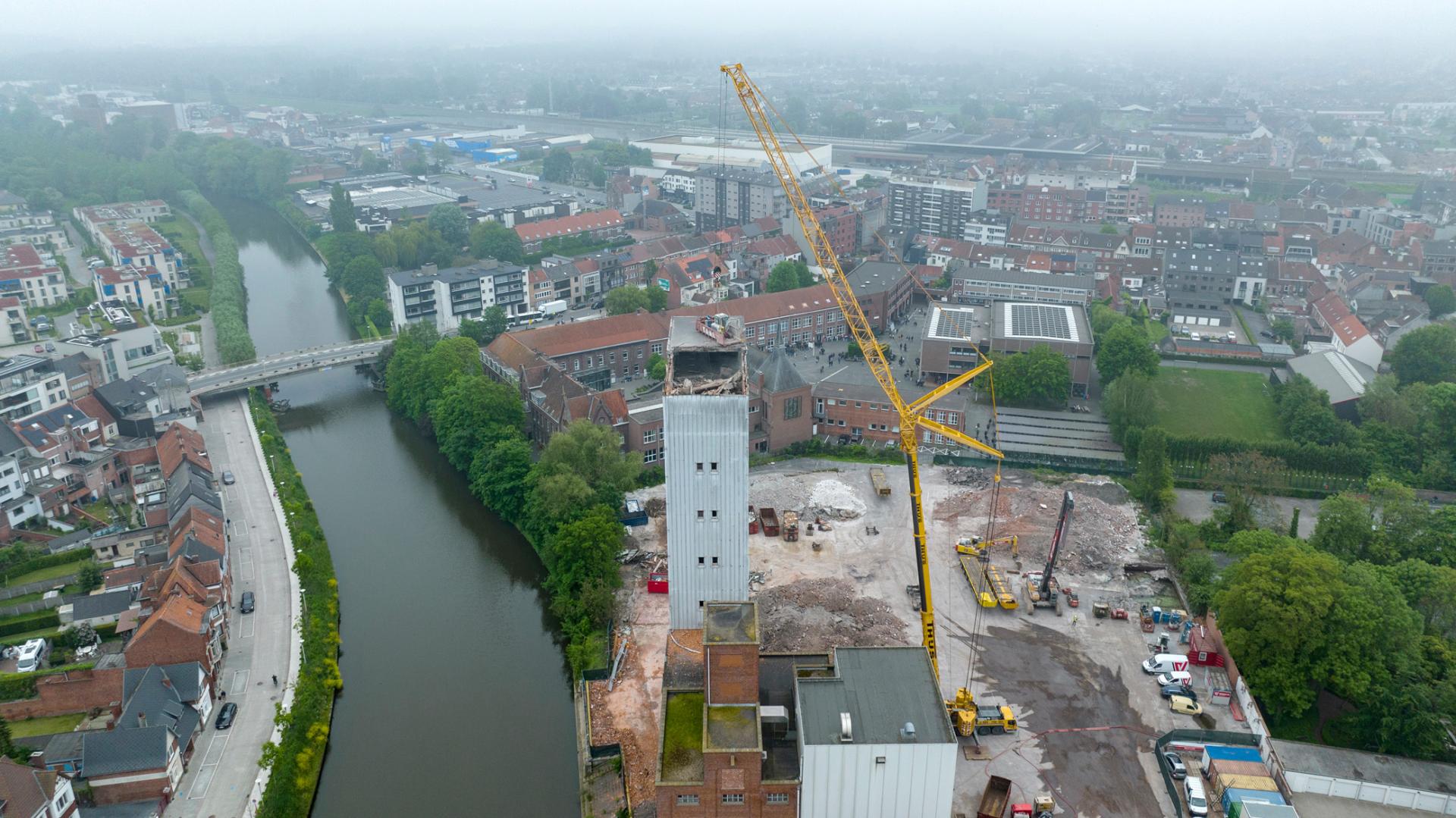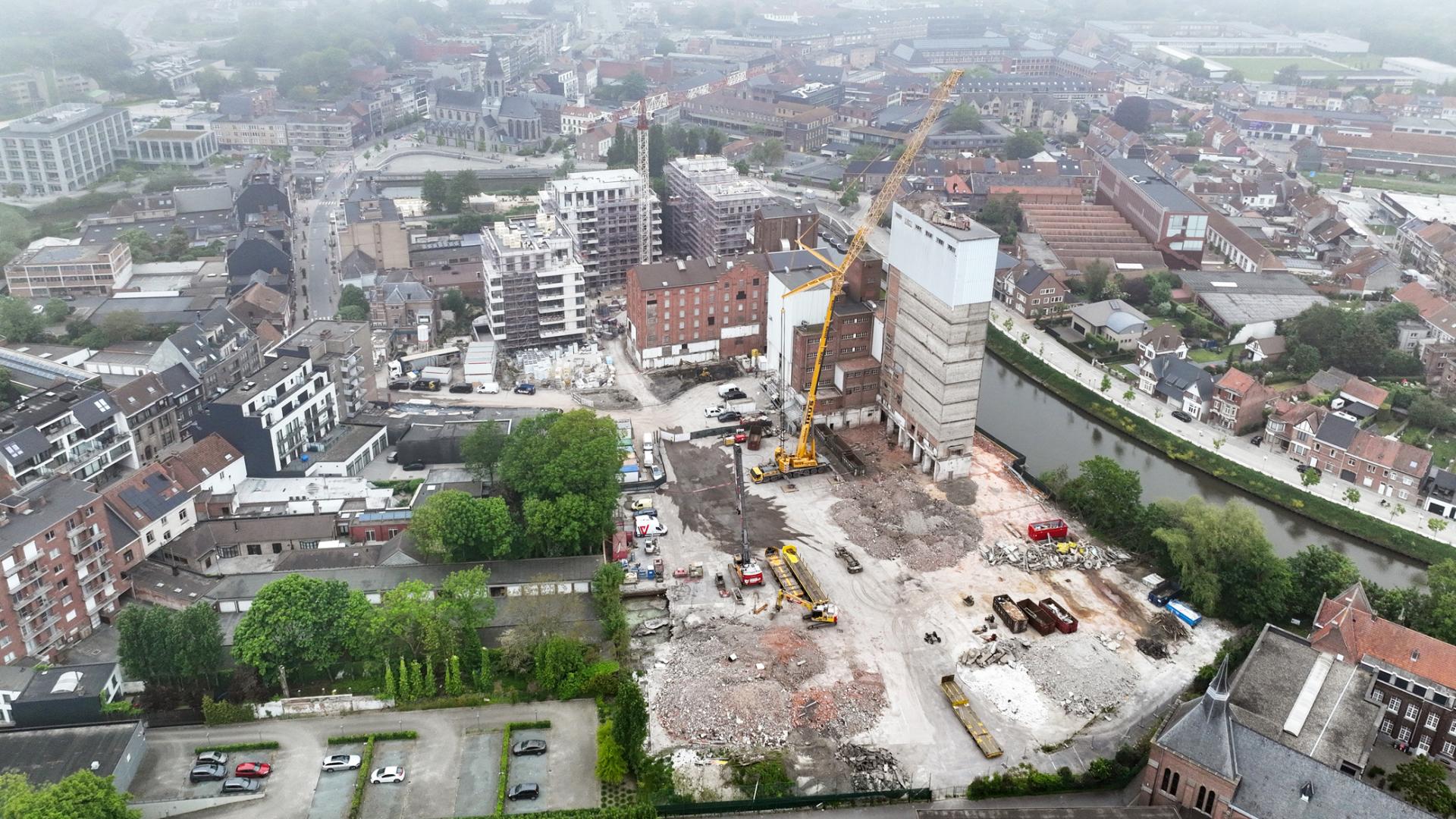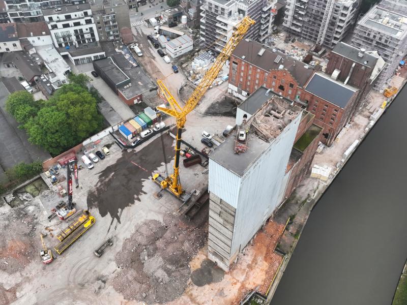 On March 1st, the demolition work began at the site of the Oude Molens in Deinze. This ambitious project, commissioned by 3D Real Estate/Atenor, involved the demolition of an imposing tower with a height of 56 meters. Verhelst Aannemingen eagerly took on this challenge.