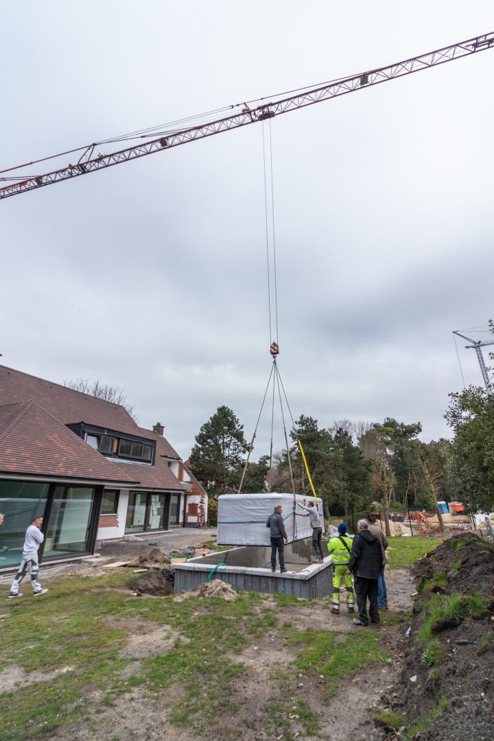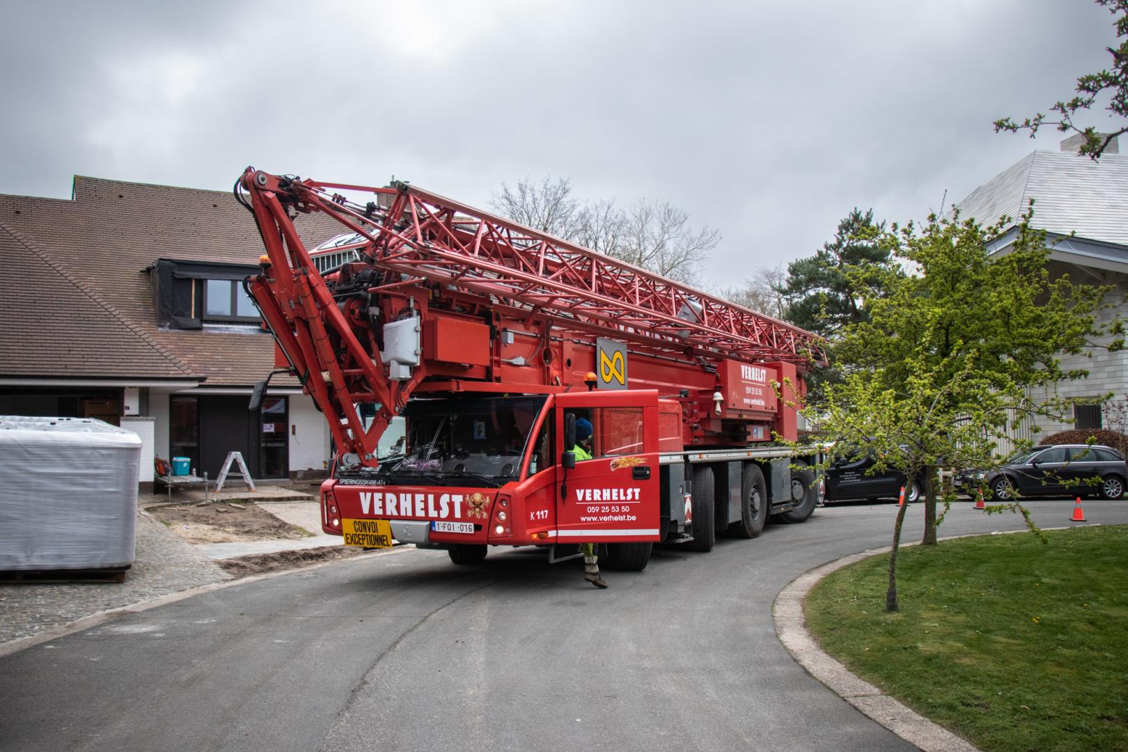 During a complete renovation, a swimming pool weighing approximately 1.9 tons had to be lifted over a house and placed precisely into a concrete basin in the garden. Thanks to our experience and expertise in crane rental, we were able to successfully take on this challenge.