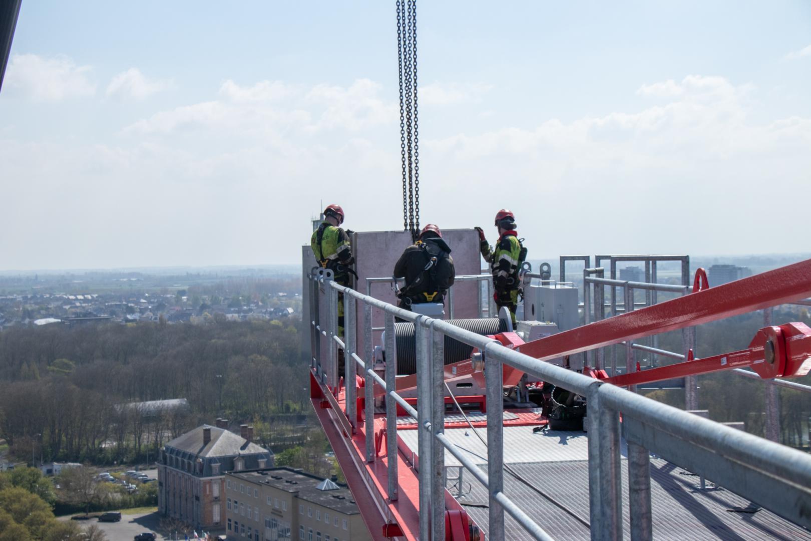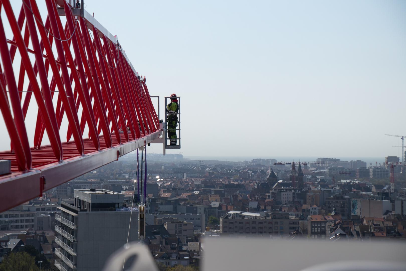 Ons team van ervaren torenkraanmonteurs zorgde ervoor dat de Wolff 7534.16 Clear torenkraan in minder dan 8 uur volledig geïnstalleerd werd zodat hij de dag nadien gekeurd kon worden. Daarna de Wolffkran klaar voor gebruik.