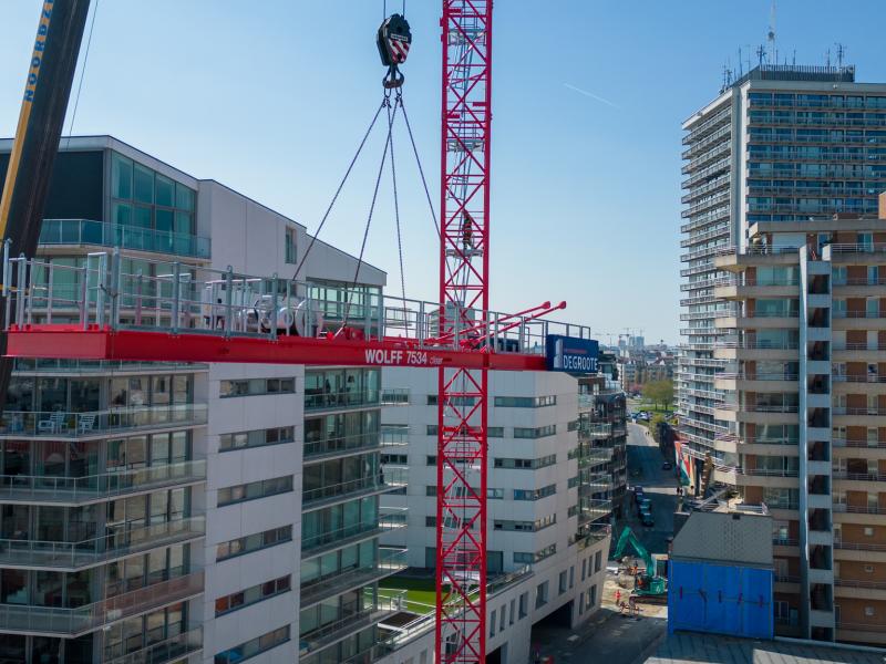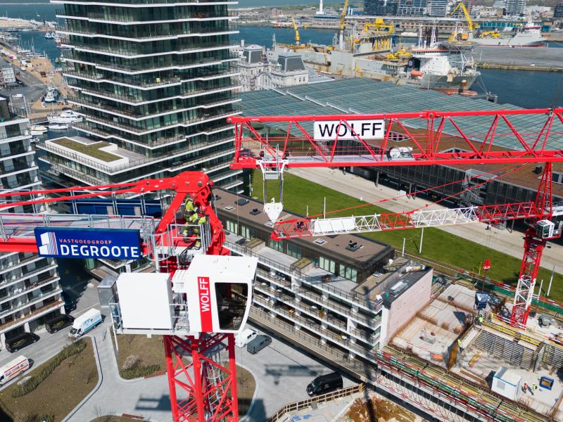Degroote bouwt met behulp van een Wolff 7534.16 Clear torenkraan hun nieuw project