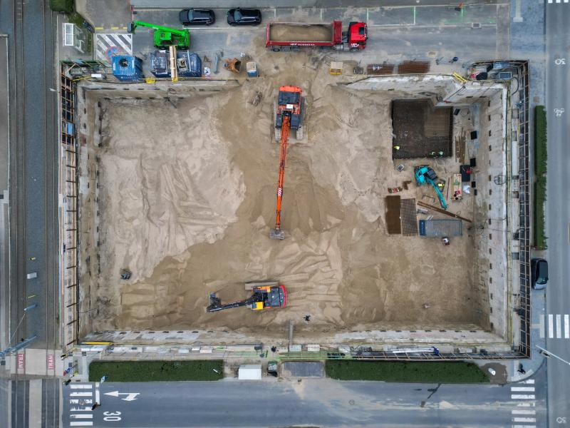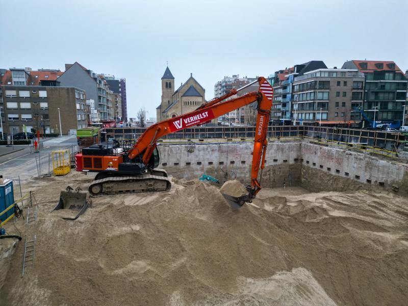 Voor Degroote Harbour Construct hebben wij op het Sint-Bernardusplein in Nieuwpoort een bouwput uitgegraven tot een diepte van ongeveer 9 meter. De opdracht was een voorbereiding voor de bouw van een nieuw appartementsgebouw en ging van start op 15 oktober 2024. Het project werd op 10 januari 2025 afgerond binnen de afgesproken termijn.